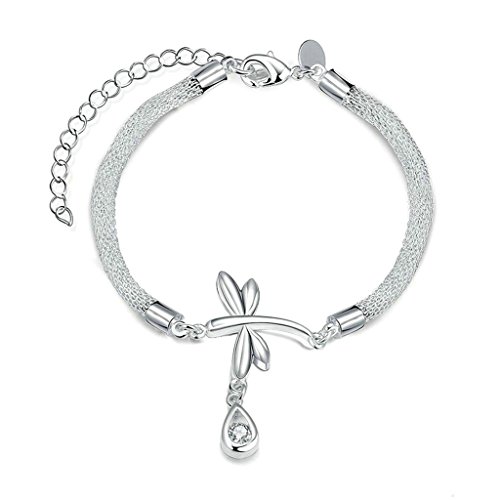 Gnzoe Jewelry, Silver Plated Silver Dragonfly Tear Drops Shape Solid Cable Bracelet Bangle For Women Adjustable Length