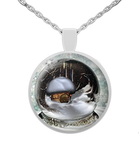 Holiday Jewelry Cozy Cottage In Snow Globe 22 Inch Necklace and 1 Inch Round Pendant by Vitazi Designs (silver-plated-zinc-alloy)