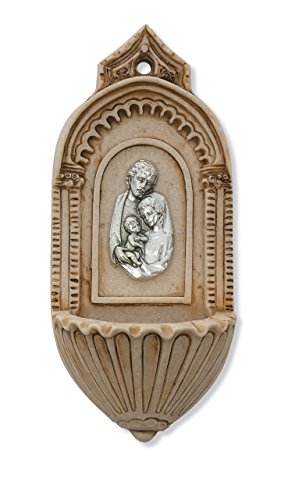 HOLY FAMILY WATER FONT, ST. JOSEPH, ST. MARY, BABY JESUS, NATIVITY SCENE, HOLY FAMILY RESIN WATER FONT 3″ X 7″