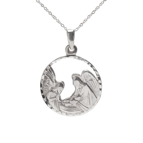Guardian angels and baby Jesus baptism medallion pendant necklace featuring sterling silver cable chain…. Read more…