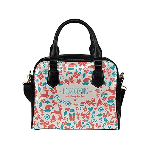 Christmas Reindeer Mistletoe and Holly Women’s PU leather Shoulder Bag Handbag