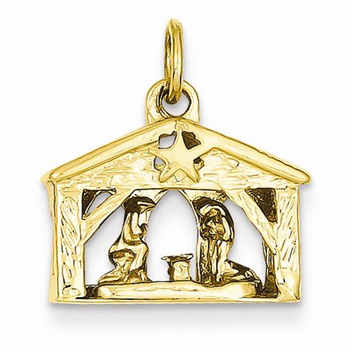 Solid 14k Yellow Gold Polished Nativity Charm Pendant (18mm x 18mm)