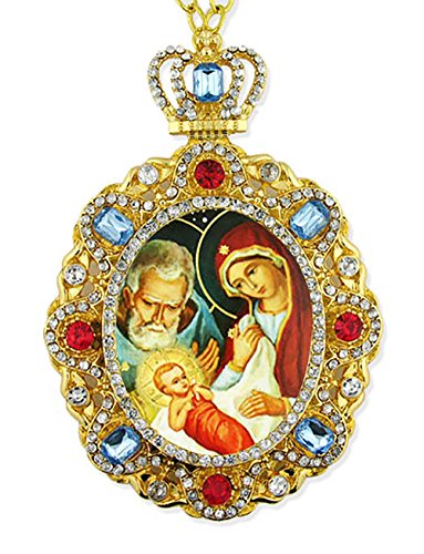 Jeweled Nativity Scene Icon Pendant Religious Christmas Ornament 4 Inch