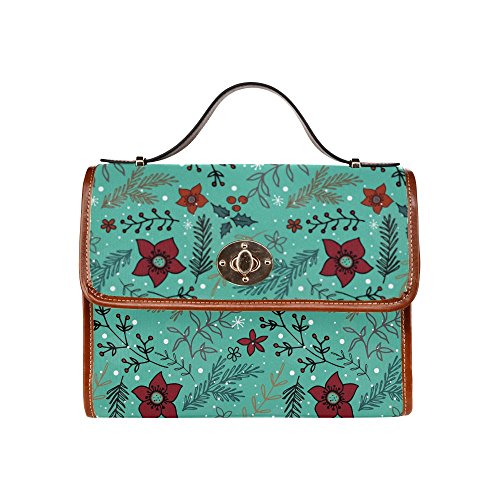 Christmas Mistletoe and Holly Waterproof Canvas Tote Crossbody Bag Shoulder Messenger Bags