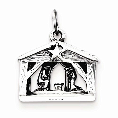 Sterling Silver Antique Manger Nativity Christmas Jesus Charm Pendant